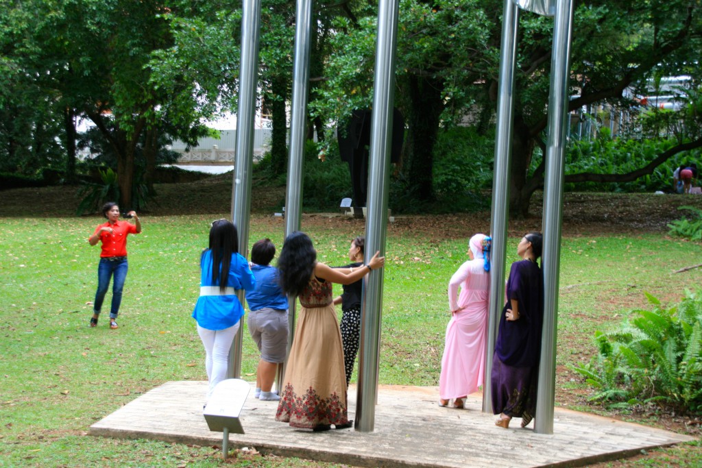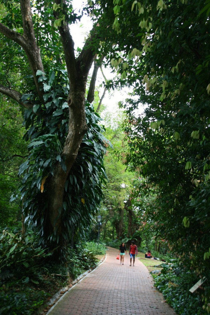 Når MacRitchie «går i vasken», må vi finne på noe annet denne dagen, det vil si det som er igjen av den. Våre opprinnelige planer tilsier at det alternative turmålet bør være et grøntområde. Mer eller mindre tilfeldig faller valget på Fort Canning Park – som absolutt viser seg å være velegnet for en søndagsutflukt. Det er det tydeligvis flere enn oss som synes. Blant annet er det usedvanlig mange unge kjærestepar å se her – enten sittende på en av de store plenene eller vandrende i bedagelig tempo på gangveiene gjennom parken.