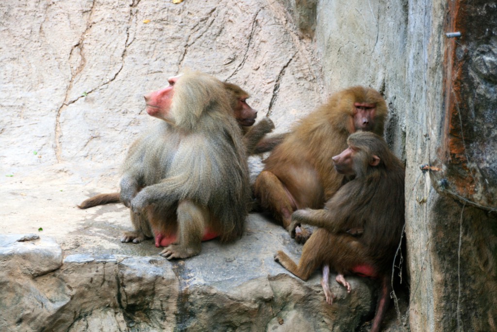 Det som står igjen som den morsomste opplevelsen under vårt besøk, er tiden vi tilbringer i «bavianenes rike». Her får vi innblikk i et bavian-samfunn med mange individer, unge og gamle. De har et ganske stort område i parken til rådighet og ser ut til å trives aldeles utmerket;