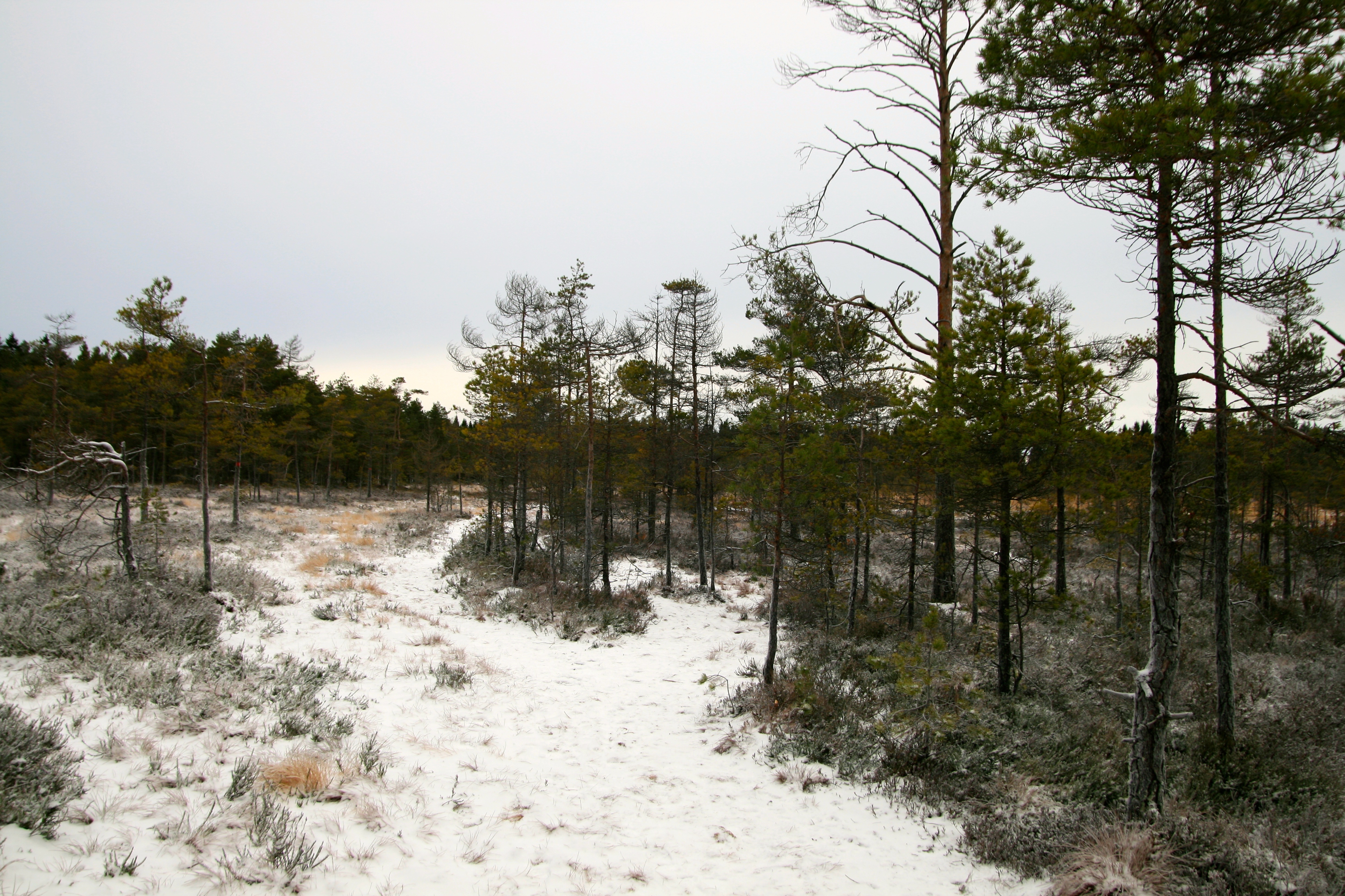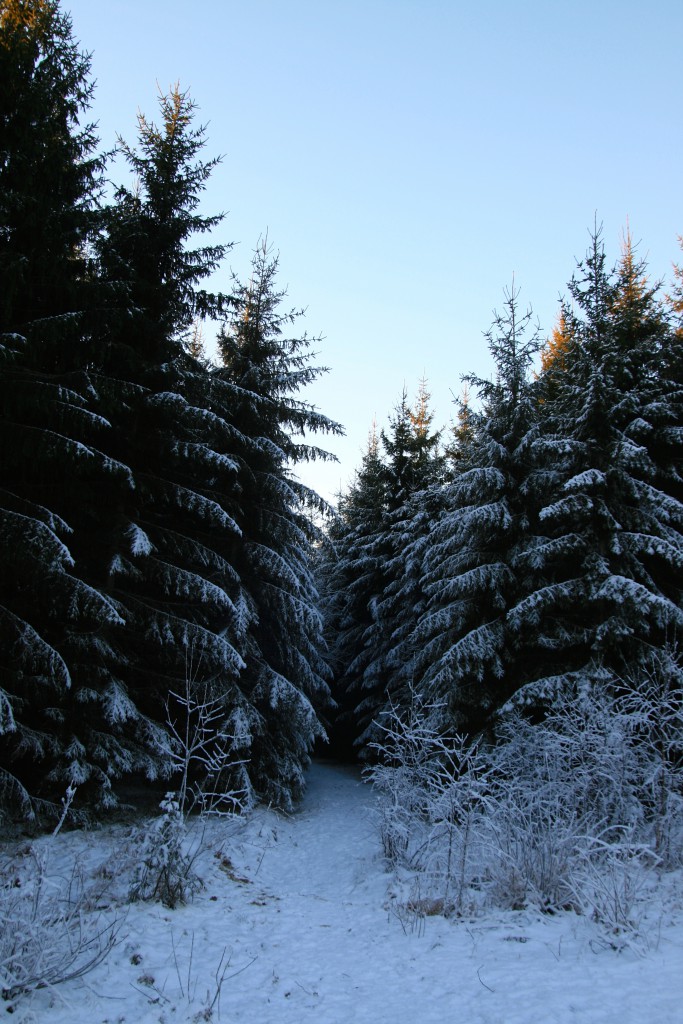 Det er lenge siden jeg har vært der ute nå – i skogen. I alle fall føles det slik. Tre uker; i noen sammenhenger er det lenge, alt for lenge. Så jeg kler på meg og kommer meg ut – ut i den skarpe vinterlufta. Jeg fryder meg over frosten som endelig har tatt tak, over det fine «melisdrysset» med snø, over stillheten. Himmelen er grå denne dagen – bare med en lysere stripe over horisonten mot nord. Men skyene plager ikke meg. Det er uansett lyst og fint, takket være snøen – om den enn er aldri så sparsom.
