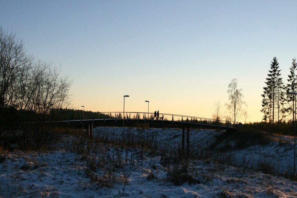 Første juledag går jeg en tur i Finstadskogen, i grenseområdet mellom Ås og Ski. Jeg krysser Tverrveien (fra E18 til Ski sentrum) for å komme dit. Først krysser jeg veien over en bro i Ås kommune, mens jeg på vei tilbake benytter en bro noen hundre meter lenger øst, i Ski kommune.