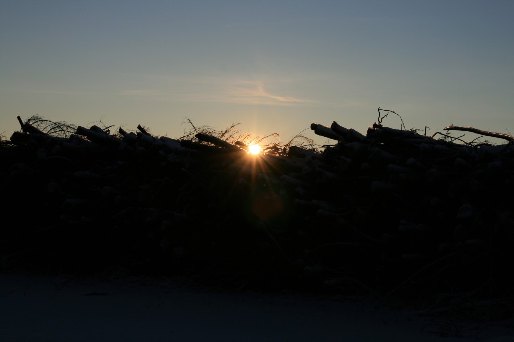 Det er 3,5 kilometer å gå til Tømmeråsen – og det går jevnt oppover hele veien. Det vi kan skimte av himmel over oss der vi vandrer gjennom skogen, forteller oss at det er lettere overskyet. Desto større blir overraskelsen – og gleden – når vi nærmer oss utsiktspunktet på Tømmeråsen – og kan skimte en himmel mellom trærne som gløder i sterke solnedgangsfarger. Det er nesten så vi blir aldri så lite oppglødd, både jeg og datteren på tyve. Når vi har kommet helt ut på «pynten» og har fri utsikt vestover, benytter jeg anledningen til å takke henne – datteren – for den smule forsinkelse hun forårsaket før vi kom oss ut. Hadde vi nådd fram til Tømmeråsen en halv time tidligere, ville vi neppe ha opplevd et slikt inferno av lys og farger som vi gjør nå.
