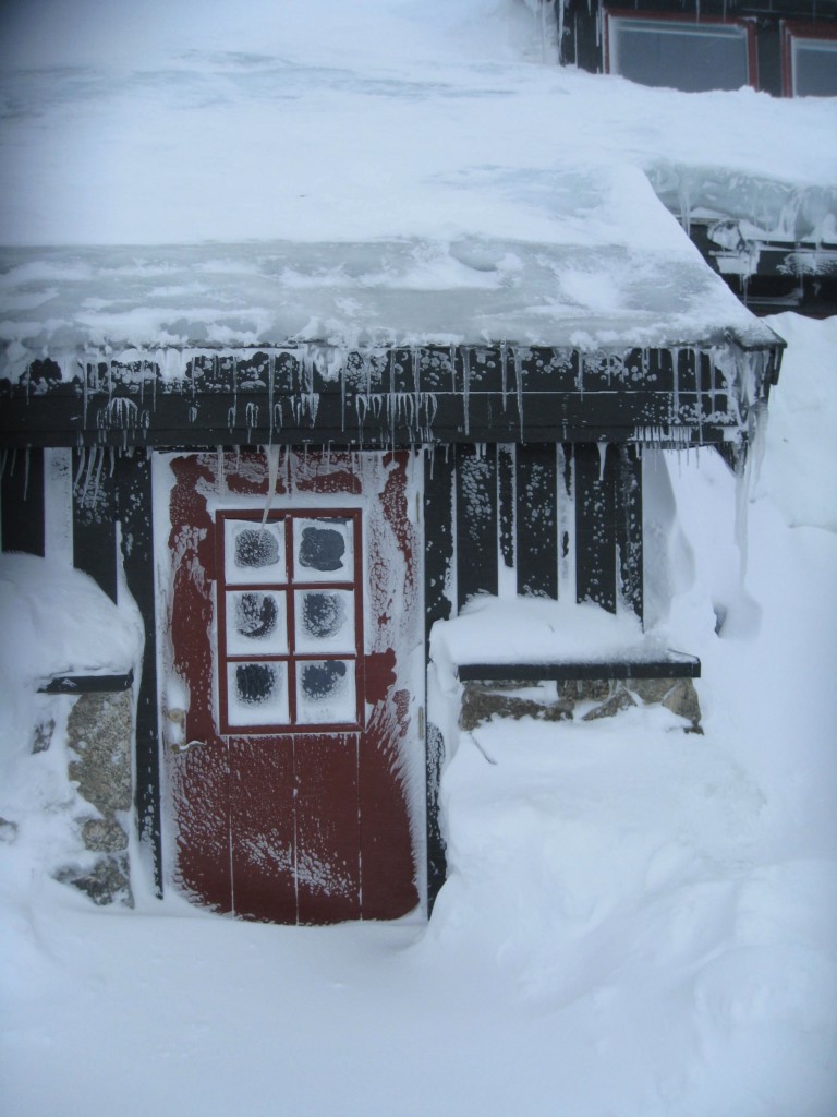 Om været er fascinerende denne dagen, skal det gi opphav til enda mer fascinasjon dagen etter. I løpet av natten blåser det ytterligere opp, og søndag formiddag er preget av svært kraftig vind og dårlig sikt. Utferdstrangen til disse damene er uansett stor, og et par av dem tar seg en liten skitur også denne dagen. Fotografen derimot, legger sin lille utflukt til stasjonsområdet og de nære omgivelser – uten ski på bena denne gangen.