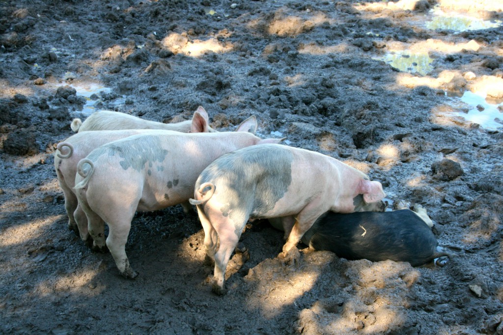 … hvor intens grisekos sto på programmet (det ligger altså en gris under trynene til de fire andre):